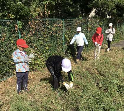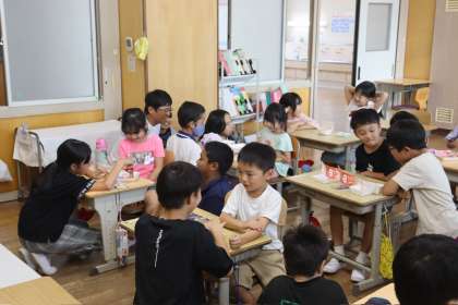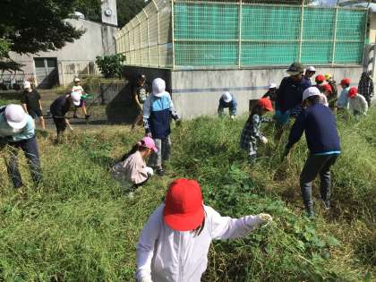 1、6年生で協力して畑の草取りを行いました。6月に植えたさつまいもが元気よく育つために、一生懸命草取りをする子どもたちの姿が見られました。6年生は、1年生が安全に草取りをしているか見守りながら、活動をしていました。草取りをした後には、1年生が生活科の学習で作った船を6年生に紹介しました。頑張って作った船を紹介することができて嬉しそうにしている1年生、1年生が話しているのを笑顔で聞く6年生の姿が見られました。