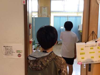 視力検査を行いました。保健室に移動する前に、教室でクイズに挑戦しました。目の働きや目によい食べ物などについての問題でした。視力は、一度悪くなってしまうとなかなかよくすることが難しいです。日頃から姿勢に気を付けたり、ICT機器を使う時間を短めにしたりするなど、目を大切に生活していきましょう。