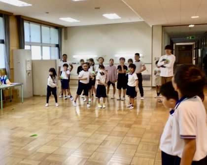 6年生が試行錯誤して、みんなで楽しめるように企画しました。緑色班は自分達で紙飛行機を折りました。その後、「紙飛行機大会」で飛んだ距離を競いました。赤色班は、体育館で「ばたっぴぃ探し」をしました。最後の「ばたっぴぃ」が見つかったときには歓声が上がっていました。大畑っ子の笑顔があふれるなかよし班遊びとなりました。1年生から5年生の楽しそうな様子を見て、6年生も計画や準備を頑張ってよかったと喜んでいました。
