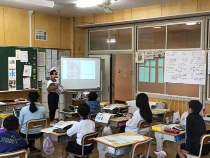 自分が行ってみたい国について、プレゼンテーションを行いました。学習用タブレットを使って、画像を検索し、話し方、目線、声の大きさ、スピードなどにも気を付けながら練習して準備をしてきました。発表本番では、聴いている子ども達から「美味しそう」「きれいな景色だなあ」「メイプルシロップ買えるんだ」などのつぶやきが聞かれました。
