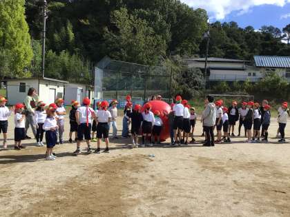 今年度初の「大玉送り」の練習を行いました。全校児童が大玉に触れられるように、1から3年生は、転がして玉を送り、4から6年生は、頭上で玉を送ります。怪我をしないように、細心の注意を払いながら、活動しました。本番は、地域の方々にも参加いただく予定です。とても楽しみですね。
