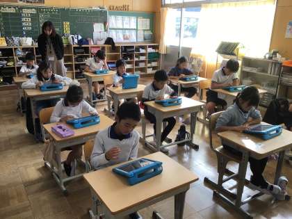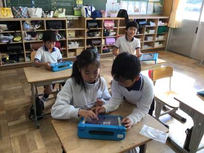 ICT支援員の先生をお招きして、プログラミング学習を行いました。スクラッチというアプリを使って、ピンポンゲームを作る活動をしました。画像を選んだり、動きを確認したりといった作業を楽しみながら行なっていました。うまくいかないことや分からないことを支援員の先生に教えていただき、とても充実した時間を過ごしました。授業の最後の振り返りでは、「プログラミングでゲームを作ることができてうれしい」「プログラムでゲームができるなんて驚いた」等の感想が出ました。