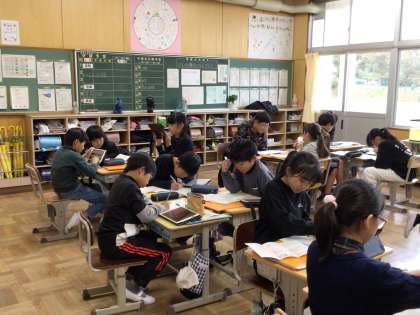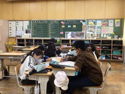先回に引き続き、5、6年生のなかよし班(縦割り班)毎に集まり、遠足で回る順番やバスの座席などについて話し合いました。「1年生も楽しめるところがよいと思う」「そこは、小さい子だとちょっと怖いかも」などと大畑っ子全体のことを考えながら、話し合う姿がありました。