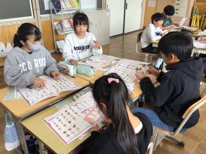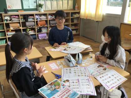 注文したいものを聞いたり、注文したものの値段を聞いて答えたりする活動を行っています。