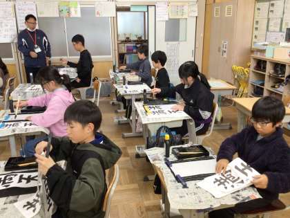 年明けに行われる書き初めに向けて、練習が始まっています。6年生の課題は「満天の星」です。画数が多くて書きにくかったり、字形が難しかったりしますが、お手本をよく見て、練習を重ねています。