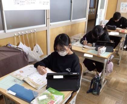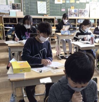 外国語科の勉強の中に、Sound and Lettersというのがあります。デジタル教科書のQRコードを読み取り、音声を聞き取って教科書に書き込みます。各自で取り組むと、聞き逃したり、よく聞き取れなかった音声を自分のペースで何度も聞くことができるという利点があります。子ども達は、聞いた音声を自然と口ずさんでいました。