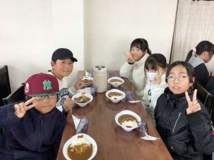 2日目の昼食は、カレーです。午前中の班別学習でたくさん歩いたので、お腹ぺこぺこで、より一層美味しく感じます。