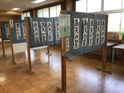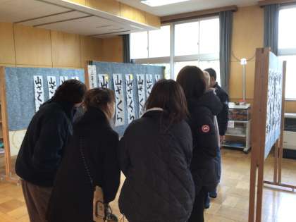 書き初め大会で一生懸命書いた作品が、1月23日(金)まで1、2階多目的室で展示されています。来校された際には、職員室へ一声かけていただけますと助かります。子ども達の頑張りをぜひご覧ください。