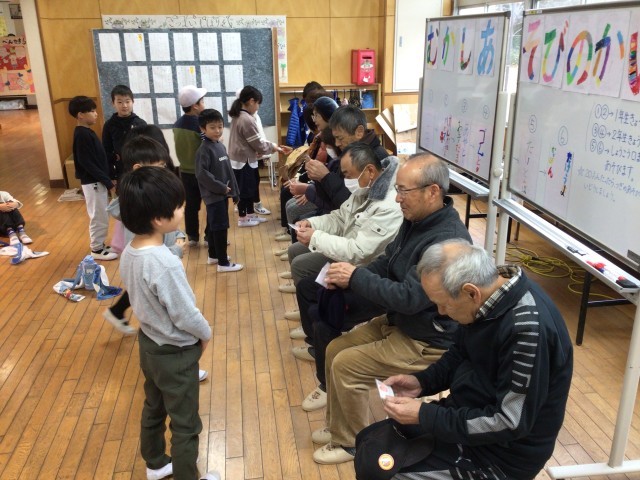 1、2年生 むかしあそびの会 公開日 2026/01/29 更新日 2026/01/29 各学年から 1、2年生が地域の方からこま回し、けん玉、竹でっぽう、あやとり、お手玉、ゴムとび、竹とんぼ、竹馬、かっぽんなどのむかしのあそびを教えていただきました。活動の中でボランティアの皆様も大畑っ子も、真剣な表情や笑顔がたくさん見られ、楽しい時間を過ごすことができました。ボランティアの皆様、ありがとうございました。 +4
