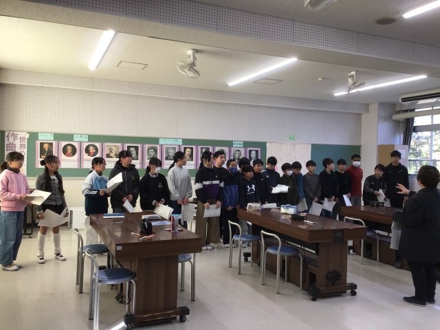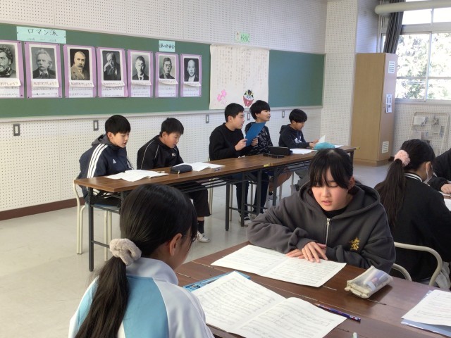 講師の先生をお招きして、卒業の歌の指導をしていただきました。歌詞にどのような想いをのせて歌うのかを考える場面があったり、高い音の出し方を教えていただいたりして、子どもたちは集中して取り組んでいました。最高の卒業の歌を目指して、頑張っていきます。