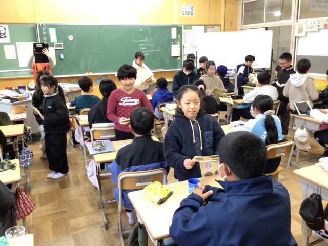 3年生は、6年生に6年生を送る会の招待状を渡しました。招待状は、1月からクラスで協力して、学校の写真を載せたり、大畑小学校区マスコットキャラクター「ばたっぴぃ」を折り紙で作ったり、ばたっぴぃの歌を撮った動画をQRコードにして貼ったりなど、6年生が嬉しいと思ってくれる工夫をたくさん入れた物となりました。渡す時には、「6年生を送る会、楽しみにしていてください!」と大きな声で伝えることができました。渡した後には、「緊張したけど、6年生が喜んでくれたと思う」と達成感を得ていた3年生でした。