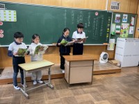 6年生が1から5年生からもらった手紙を真剣に読んでいます。
