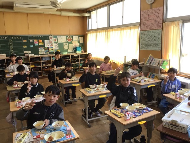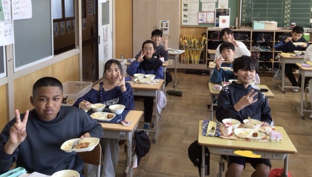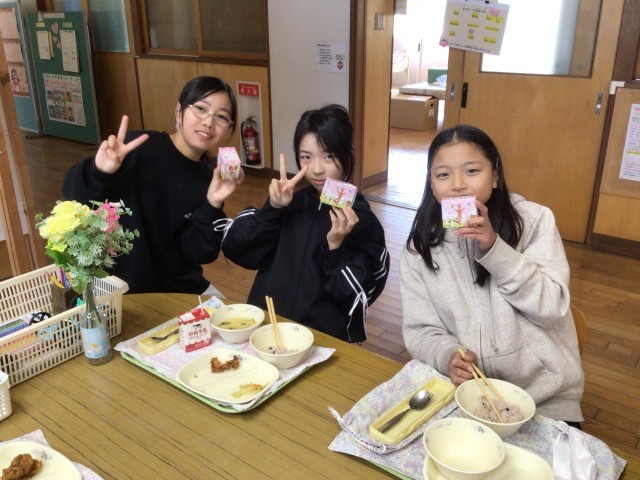 めでたい日に食べる赤飯や大人気メニューのからあげ、お祝いのケーキなど、大畑っ子はとても嬉しそうにしていました。