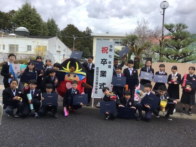 笑顔いっぱいで卒業生が巣立っていくことができたのは、保護者の皆様、地域の皆様のお力があったからです。6年間大変お世話になりました。ありがとうございました。これからも大畑小学校の仲間でいてください。