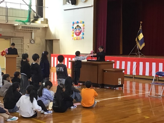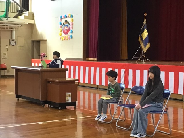令和7年度修了式を行いました。まず始めに修了証書の授与を行いました。各学年の代表児童の動きに合わせて、立派に行動できました。次に、代表児童による作文発表がありました。真剣に耳を傾ける大畑っ子の姿が印象的でした。最後に、校長から話がありました。お話、詩の紹介には、今年度の大畑っ子の頑張りと次年度への期待が込められていました。