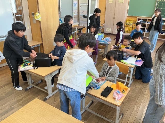 1年生 朝の準備 公開日 2026/04/09 更新日 2026/04/09 各学年から 小学校生活が始まりました。朝の準備の仕方を、6年生のお兄さん、お姉さんから教えてもらいました。「帽子はどうするの?」や「箸セットはどこ?」などと自分で6年生に聞く姿に、たくましさを感じました。明日から、教えてもらった準備を頑張っていきたいですね。 +1