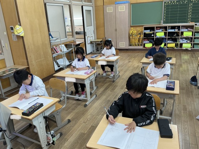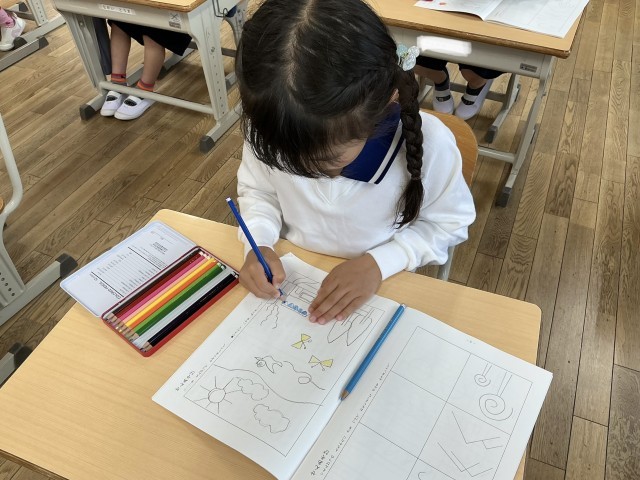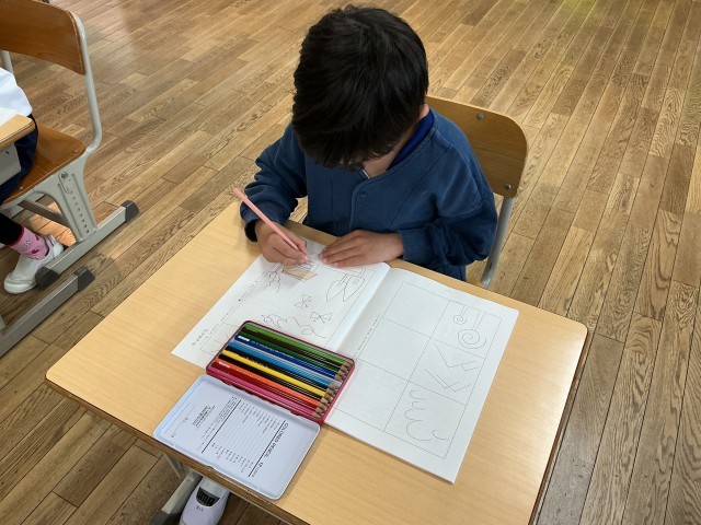 1年生 えんぴつの持ち方 公開日 2026/04/13 更新日 2026/04/13 各学年から 文字を書くときの姿勢と、鉛筆の持ち方を学びました。線を書いて、色鉛筆で色を塗りました。姿勢と鉛筆の持ち方を意識して、丁寧な文字が書けるようになると良いですね。 +1