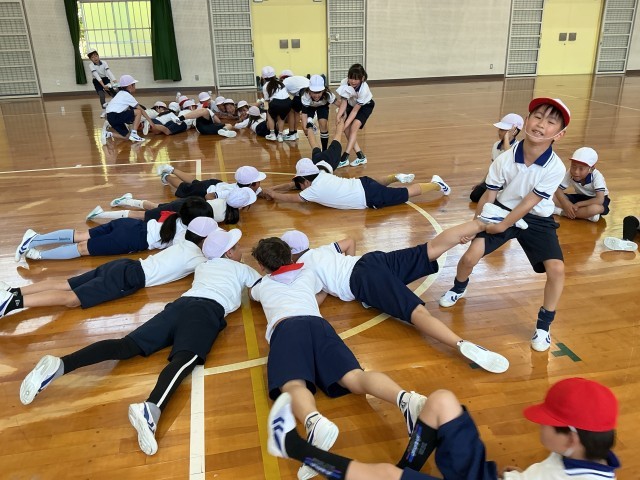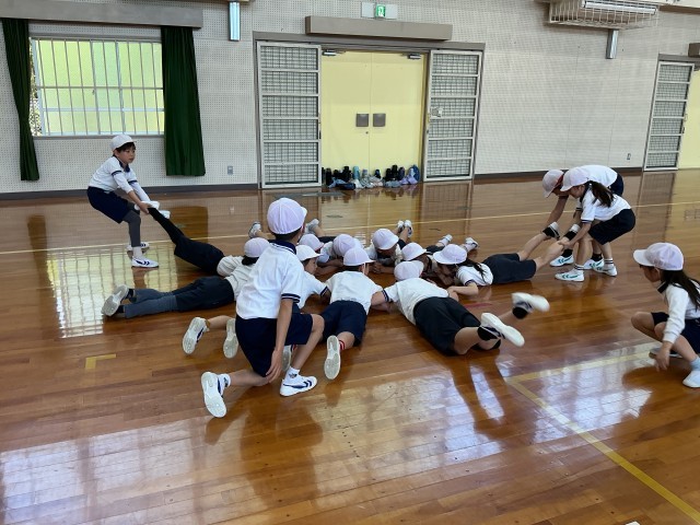今日は待ちにまった進級して初めての体育科の授業でした。準備運動の仕方を確認した後、レクをしながら体を動かしました。とっても盛り上がりときおり歓声が上がっていました。