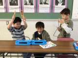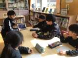 「竹とんぼ贈呈式」と「1、2年生の昔遊び」の様子をひまわりネットワークが取材、撮...