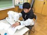 家庭科「学んだことを活かして」の学習で、ミシンで雑巾を縫って、公務手の方々にプレ...