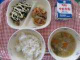初めての給食です。 2年生から6年生は、去年の学級の配膳のやり方を新しい担任の先...