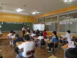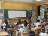 漢字の学習をしていました。 子どもたちが「漢字の先生」となって、「読み方」や「使...