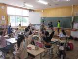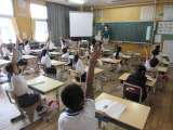 2年生の国語です。黒板に掲示された文章から、決められた文字を探す活動です。きちん...