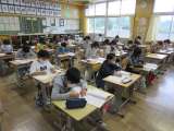 算数の問題に取り組む4年生。6年生に負けないぐらいシーンとして問題に取り組んでい...