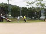 草刈り機を使えない子どもたちですが、清掃の時間、刈った草の一部をみんなで集めて、...