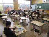 学校生活の中でマスクを長い時間外す給食、人数の多い教室では、オープンスペースも活...