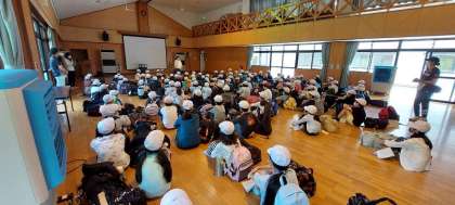 5年生は、無事、豊田市総合野外センターに到着し、入所式を終えました。天気は、晴れ間も見えているそうです。