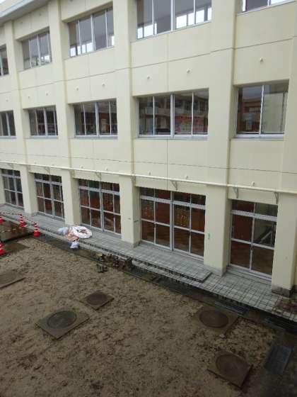 エレベーターは、東渡り廊下の中庭側に設置されます。工事は年内続く予定です。ご迷惑をおかけします。