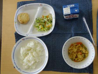 最後の写真は、9/6の給食メニューです。「ご飯」「親子煮」「豆腐しんじょ」「青菜和え」「牛乳」でした。