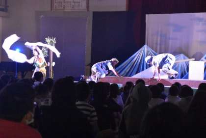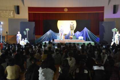 新型コロナウイルス感染拡大にともない、ずっと延期していていましたが、全校で集まらず、2回公演としたり、換気を十分に行ったりするなどの感染対策を行い、どうにか行うことができました。