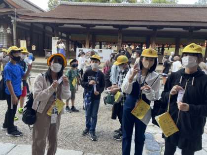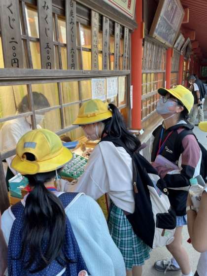 春日大社で、おみくじを引いている、子どもたちの様子です。