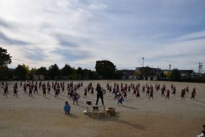 「徒競走」は、運動場の臨時駐車場の関係もあり、プール側がスタートになりました。ゴール前は、本部席、来賓席になります。子どもたちの中には、放課に運動場で走る練習をしている子も見られます。