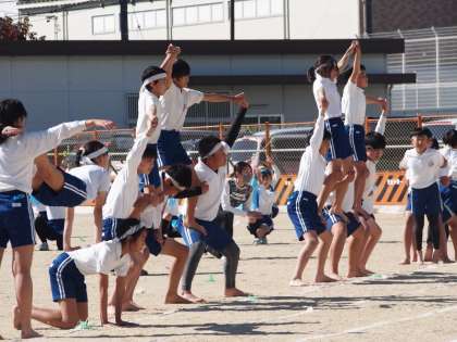 「組体操」、練習から真剣に取り組み、多くの技を多くの子が完成できるように努力してきました。土台の子も、上の子も信頼関係を築きながら、練習をしてきました。