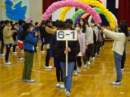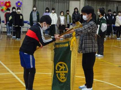 会の中で、6年生から、5年生への、校旗引き継ぎもありました。