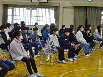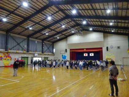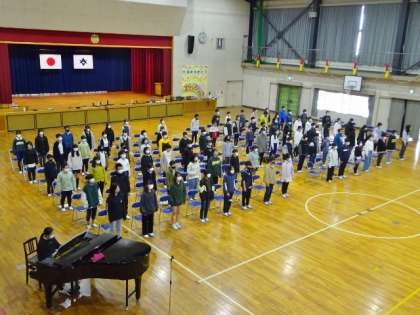 今日は、6年生が体育館で集まり、合唱の練習をしていました。音楽の先生や校長先生からアドバイスを受け、上達していました。