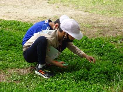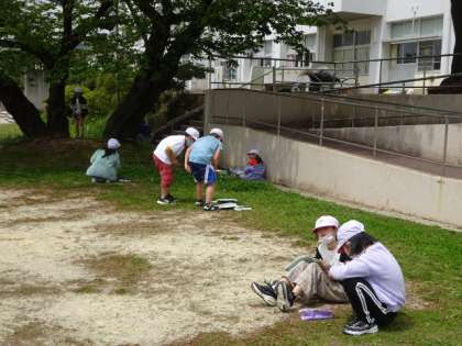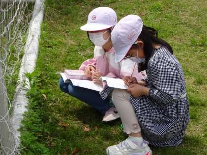 普段、遊んでいる運動場ですが、あらためて観察し、いろいろな発見をしていました。