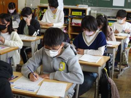 6年生が「全国学力・学習状況調査」を実施しました。今年度は、国語と算数の二教科を行いました。