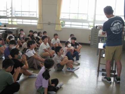 6月12日(月)は、1年生。13日(火)は3年生で行いました。子どもたちは、楽しそうに話を聞いています。