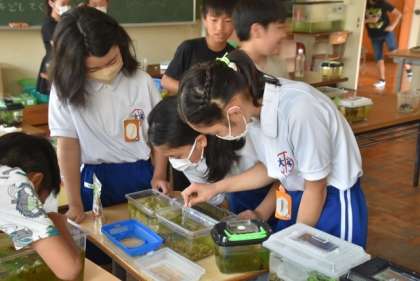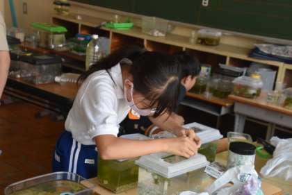 5年生 理科の学習「メダカのたんじょう」のために、飼育してきました。子どもたちは、放課になると水替え等のお世話を楽しそうに、また真剣に行っていました。