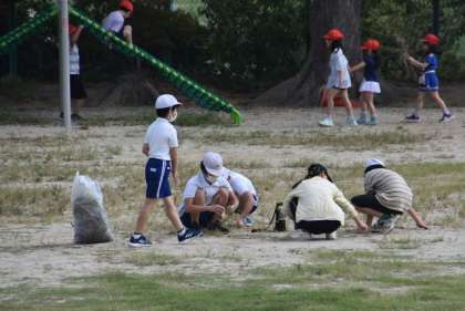 運動会の練習、運動会に向け、草取りを進めていきます。
