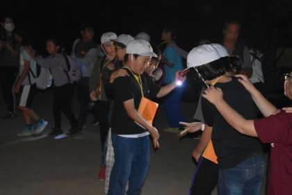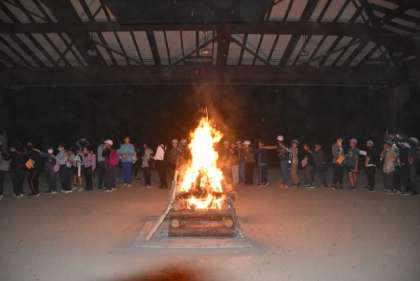 ファイヤー点火後に、ファイヤー実行委員による「じゃんけん汽車ポッポ」を、学年全員で行いました。最後は、大きなひとつなぎの輪になりました。そして、火は大きくなりました。