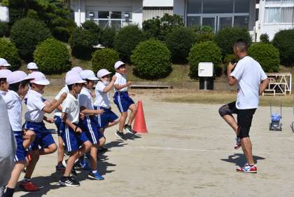 陸上男子100メートルの元日本記録保持者で、オリンピック3大会に出場した中京大陸上競技部副部長の青戸慎司さんをお迎えして「走り方教室」を行いました。
