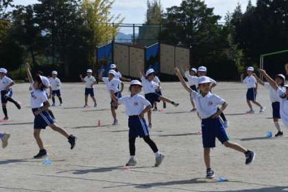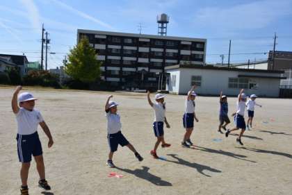 運動会の学年練習が始まっています。
