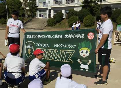 4年生が、トヨタヴェルブリッツの選手をお招きして「タグラグビー体験」を行いました。