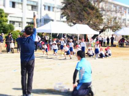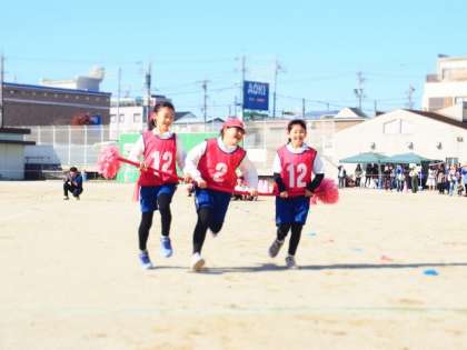 3年生、演技名「かけ出せ!協力はっけん隊!」として、徒競走と台風の目を行いました。