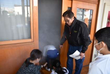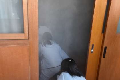 避難訓練と合わせて、4年生が「煙道体験」を行いました。
